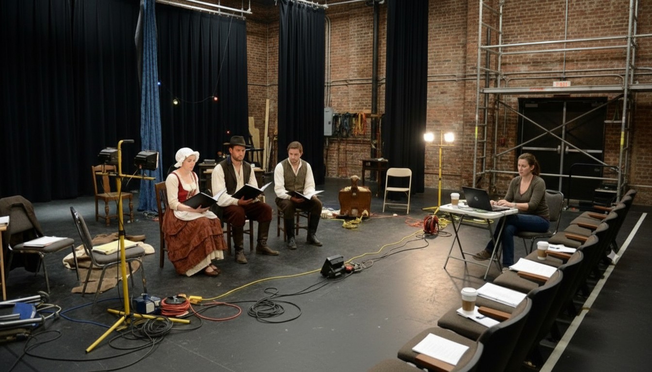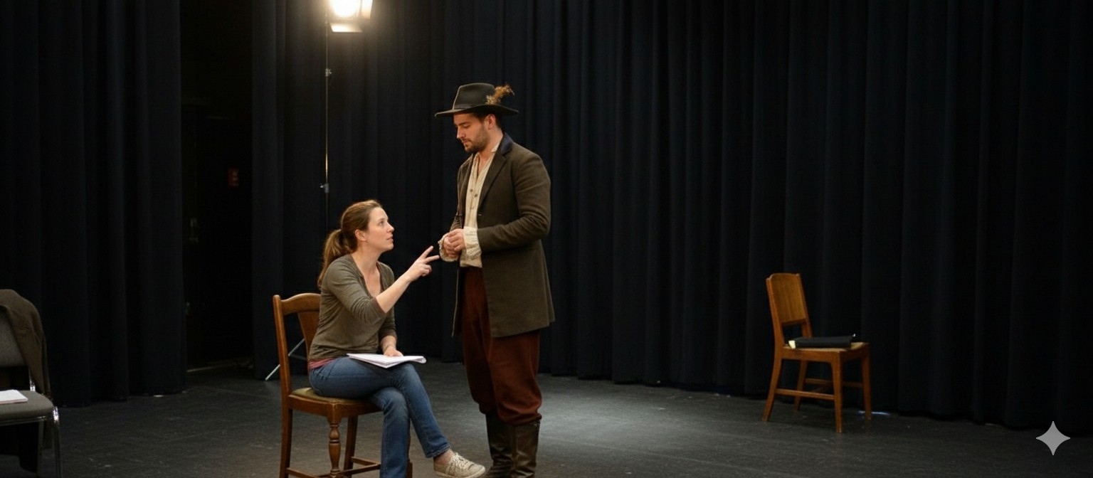 Empiezan por la escena inicial del clásico: Teodoro y Marcela se confiesan amor. Es una escena sencilla, limpia, casi inocente. Pero en el escenario, la química entre el actor y la actriz es inmediata, evidente, imposible de disimular. Aunque no está escrita en la escena, en el ensayo la actriz se lanza y besa al actor.